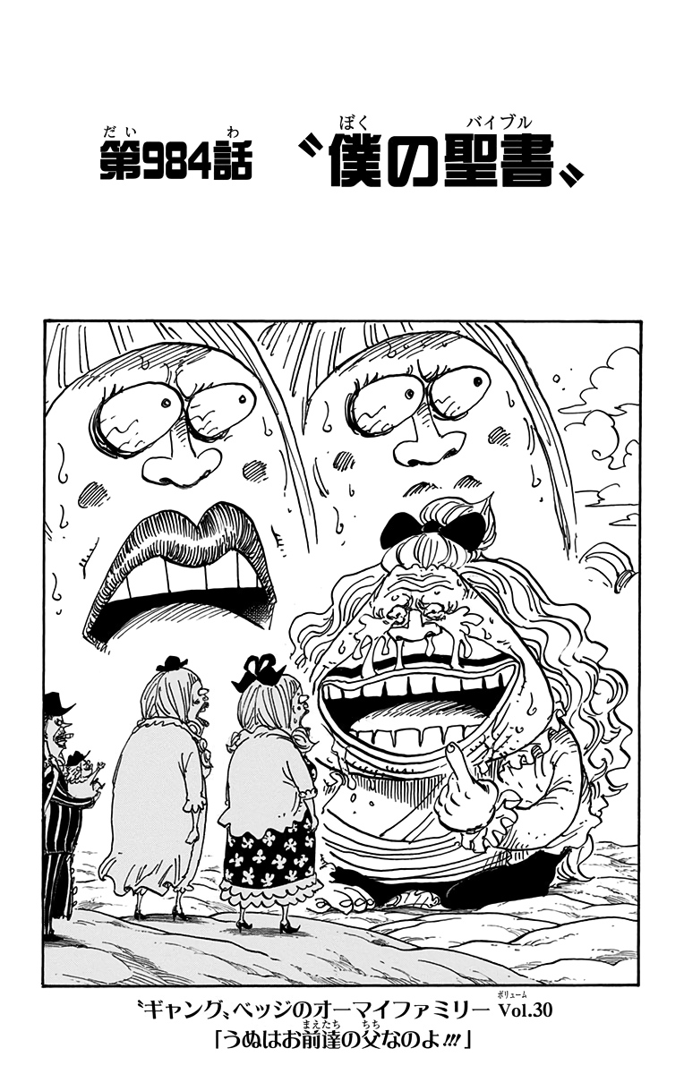 One Piece 984 : 1 / 1 cover page 2 short summary 3 long summary 4 quick references 4.1 chapter notes 4.2 characters 5 arc navigation gang bege's oh my family vol.