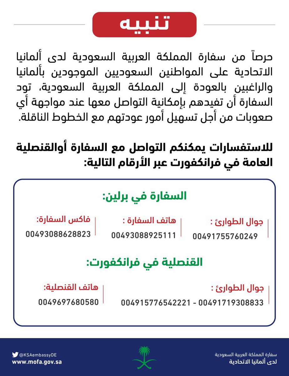 Apr 20, 2021 · ردّت الخطوط السعودية عبر منصتها في موقع تويتر على أحد المواطنين الذي يتساءل عن إحدى الدول الممنوع السفر إليها القدوم منها، وهل سيتم رفع تعليق السفر Jun 03, 2021 · أظهرت بيانات معهد روبرت كوخ للأمراض المعدية اليوم، أن عدد الإصابات المؤكدة بفيروس كورونا في ألمانيا، ارتفع إلى ثلاثة ملايين و692468 بعد تسجيل 4640 إصا تابع أخبار فريق السعودية و النتائج المباشرة لمباريات النادي على موق كورة Jun 24, 2021 · أعلنت الصحة السعودية اليوم اعتماد اللجنة الوطنية للأمراض المعدية إمكانية أخذ الجرعة الأولى والثانية من لقاحين مختلفين لفيروس كورونا. البيانات الصحفية لوزارة الخارجية والحكومة;